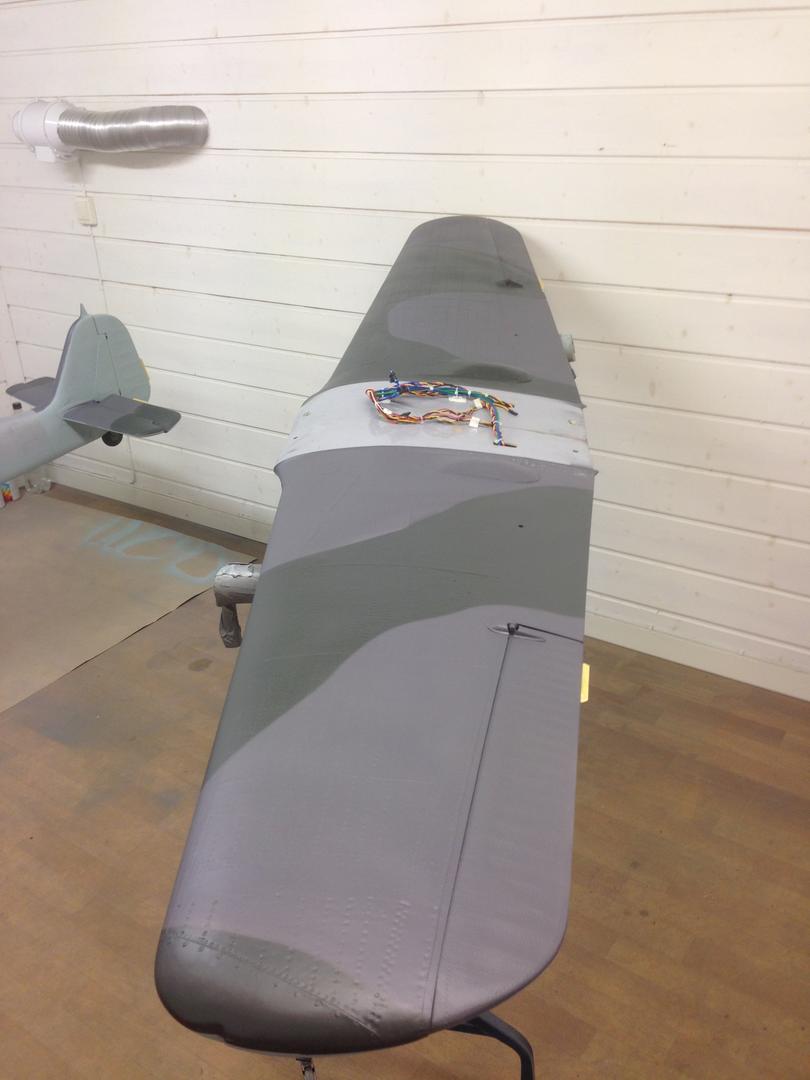 Har nå lakkert flyet i de 3 grunnfargene RLM 74,75 og 76.