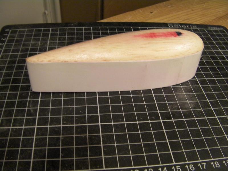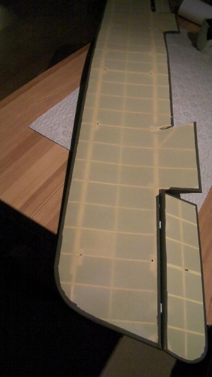 På denne store har jeg målt motoren til 1100 watt med den propellen jeg har tenkt å bruke. Det vil da si at den kan veie 5,0 kg for å få det samme forholdet mellom vekt og effekt. Tror vekten kommer til å ligge nærmere 3,5 kg, så det ser nok ut til at jeg får 314 watt/kg, så kanskje det er mulig å hovre den når den en gang blir ferdig