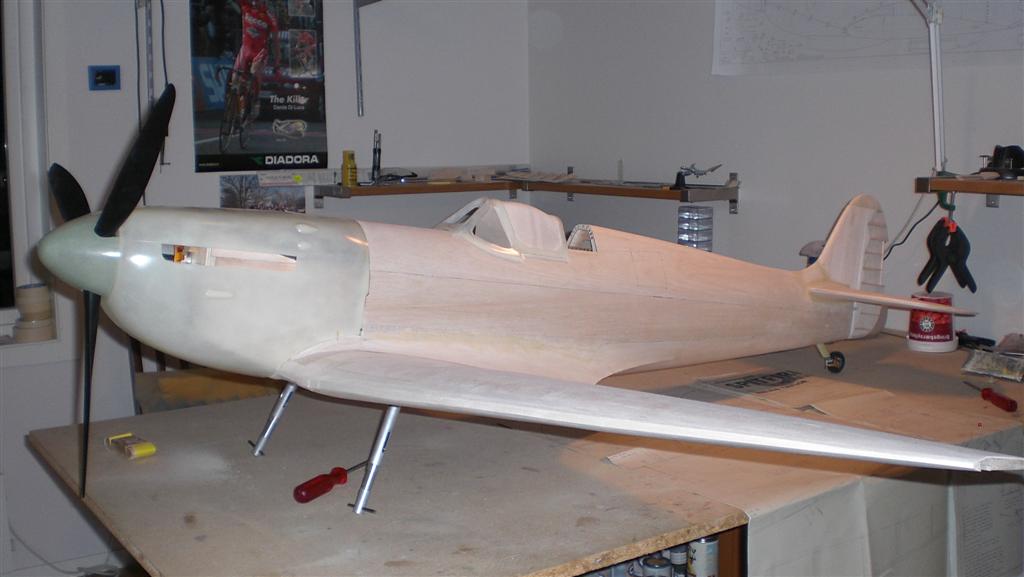 En Mk IX Spitfire fra Brian Taylor med cowling fra Vic konvertert til en mk1A. Skal prøve å gjøre mest mulig utav den og legge meg i selen for å gjøre den best mulig. Har boken og tegningene fra Paul Monforton til å hjelpe meg med linjer, nagler og detaljer og bok fra Aero detail om mk1 for å skille hva som hører til IX og 1A.