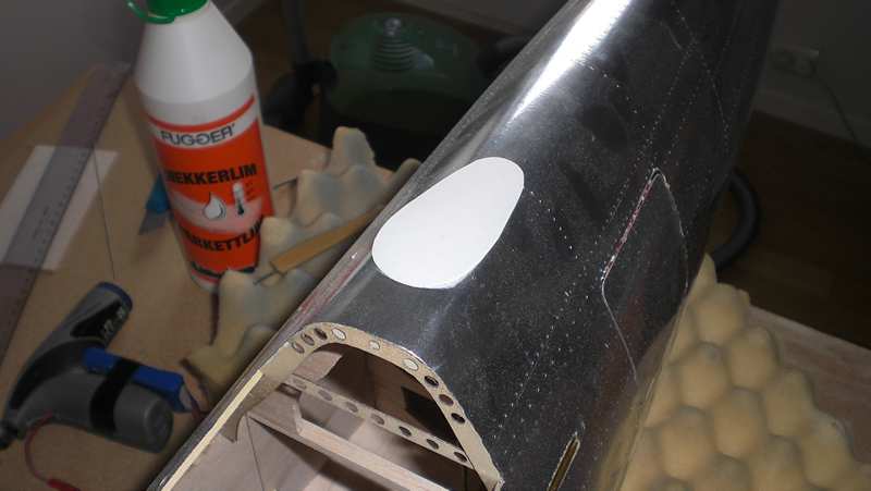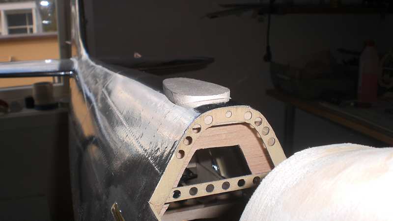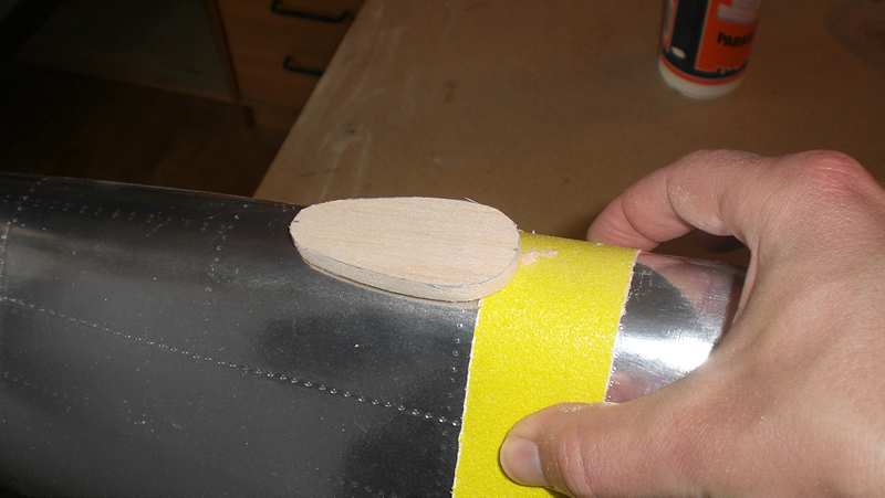 Laget også antennebasen. I ettertid ser jeg jo at det hadde vært lettere å bare bruke et tynt balsaflak og limt fast med hjelp av litt tape, men det er da kule måter og ikke-kule måter å gjøre ting på...
