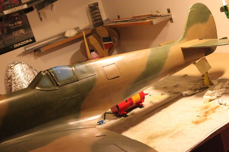 Jeg skal lage spitfiren til Brian Lane, den eneste med gul spinner, angivelig pga av en hang-over blant bakkemannskapet...