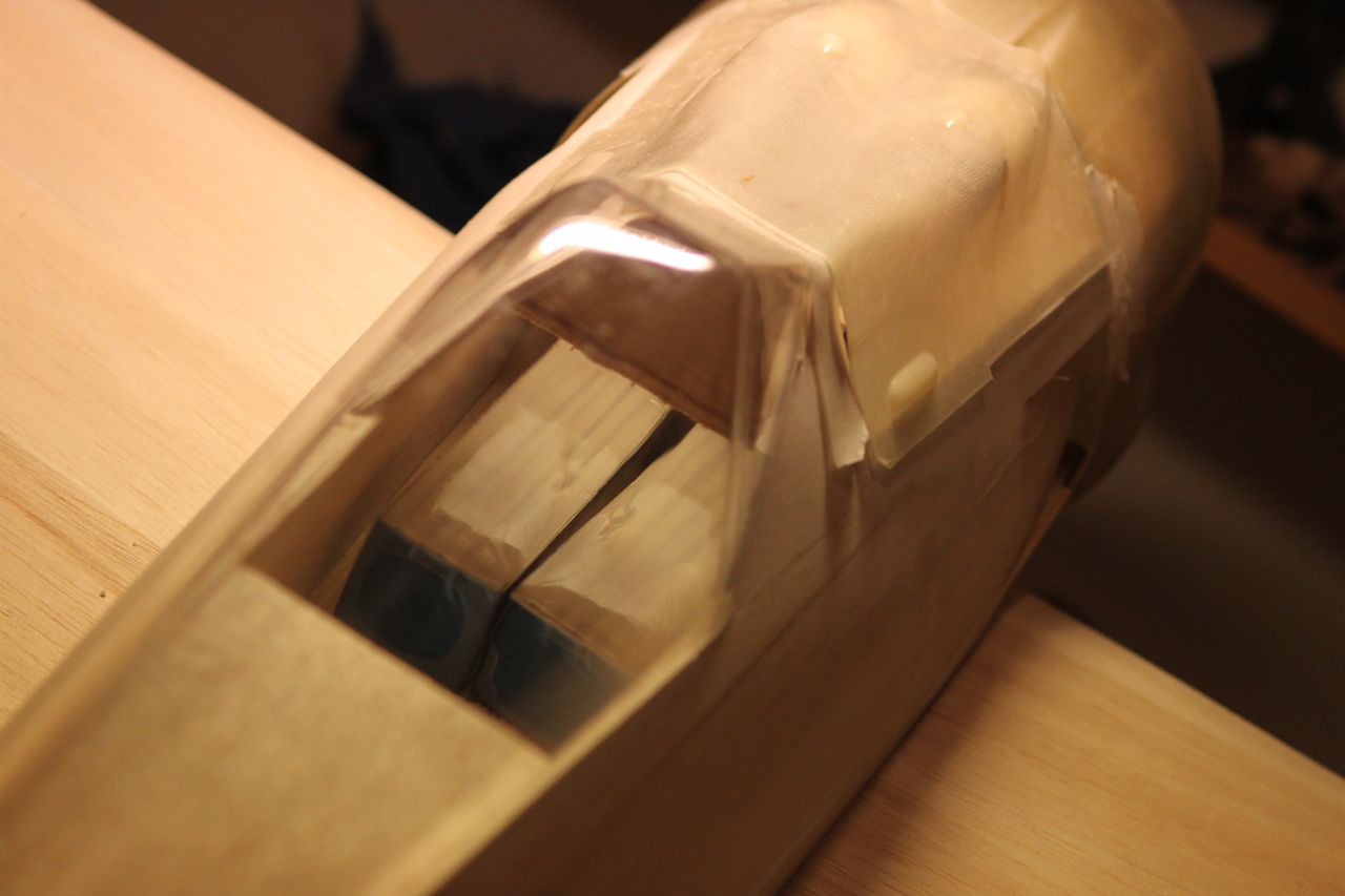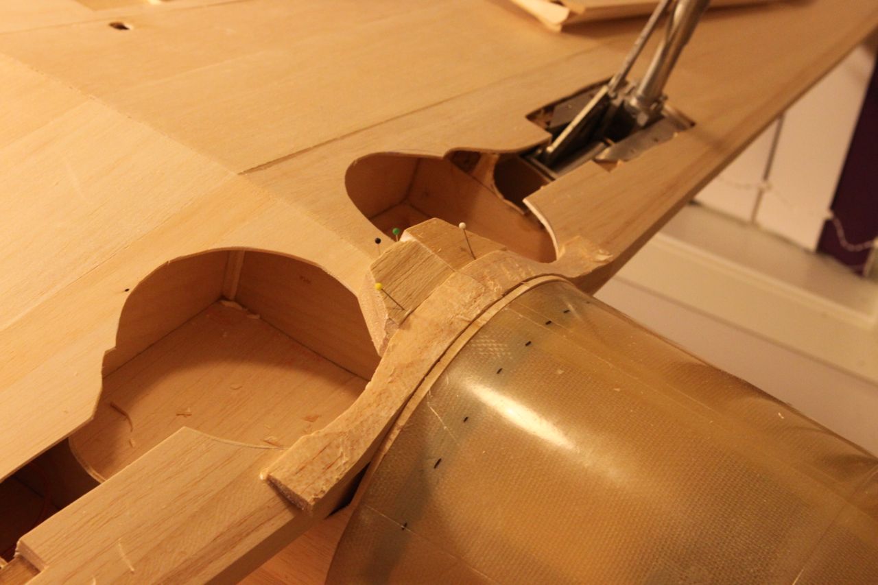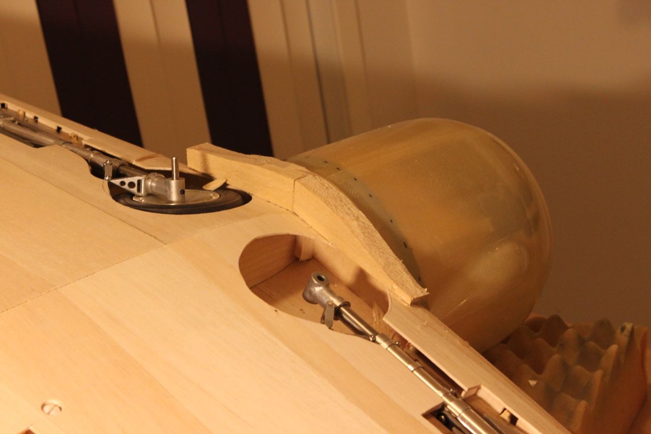 Jammen har jeg fått litt fremgang! Har limt inn tre-saken i cowling og når det tørker skal jeg lime inn en blokk av tre for å kunne drille hull til skrue som igjen holder cowlingen fast.