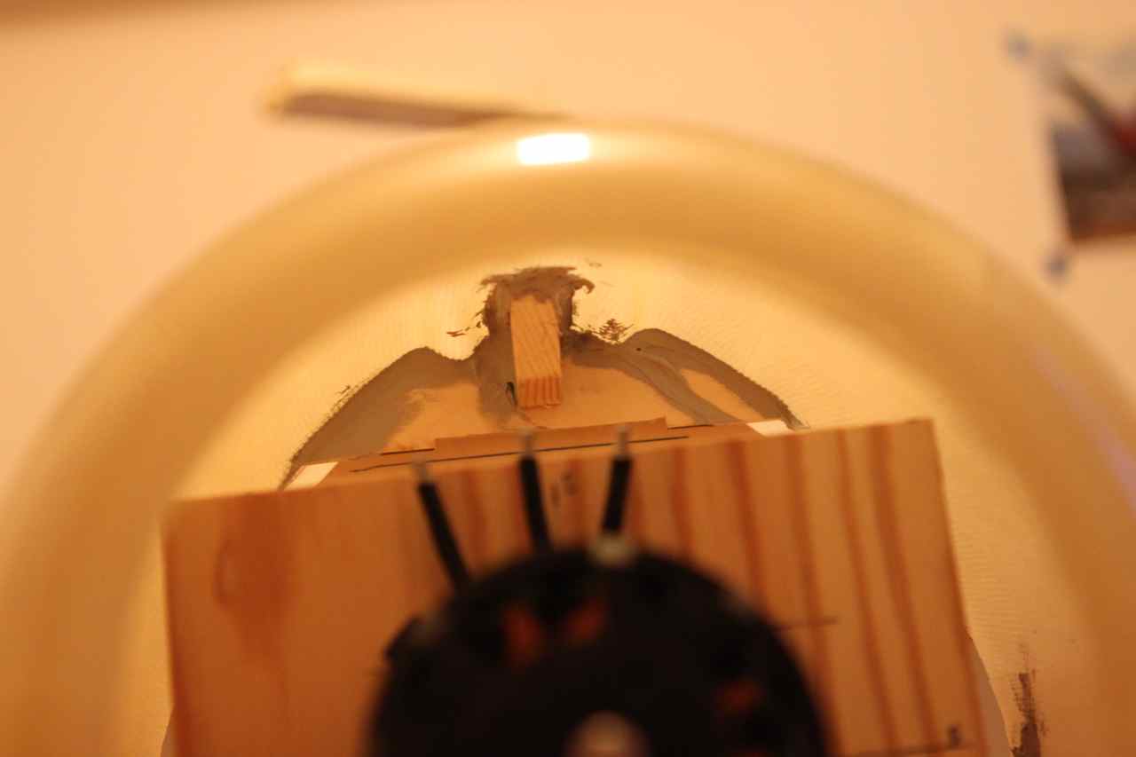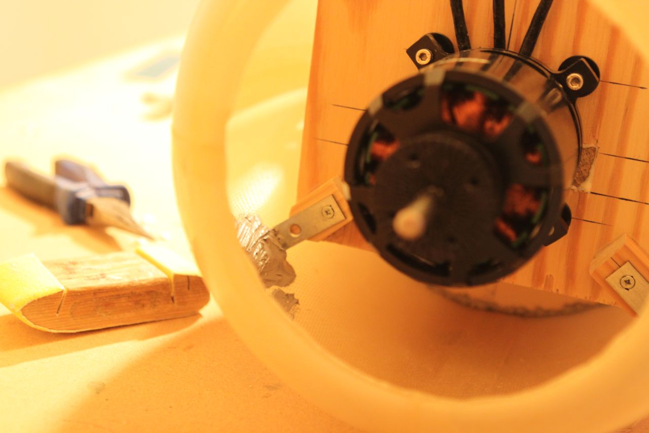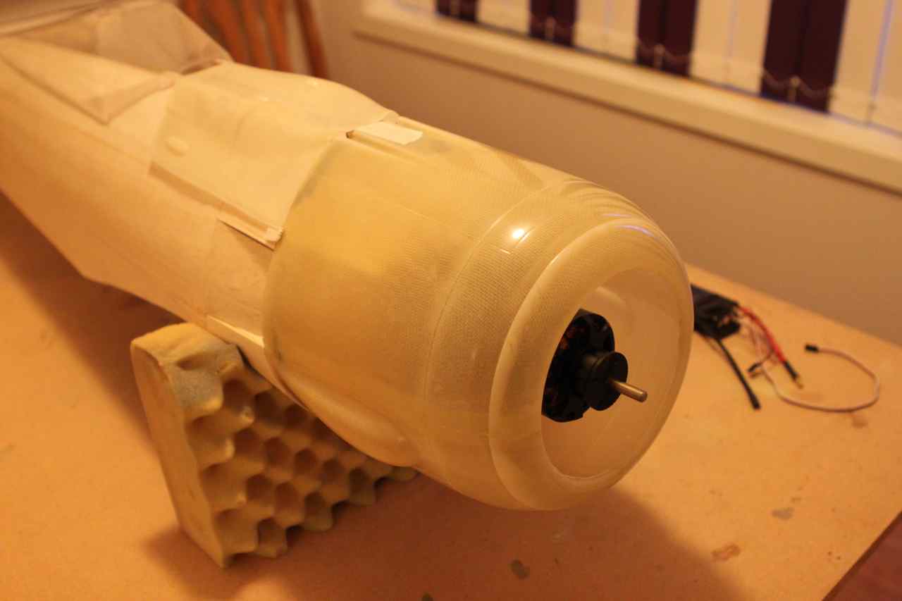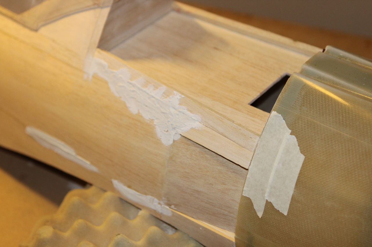 Jammen har jeg fått litt fremgang! Har limt inn tre-saken i cowling og når det tørker skal jeg lime inn en blokk av tre for å kunne drille hull til skrue som igjen holder cowlingen fast.