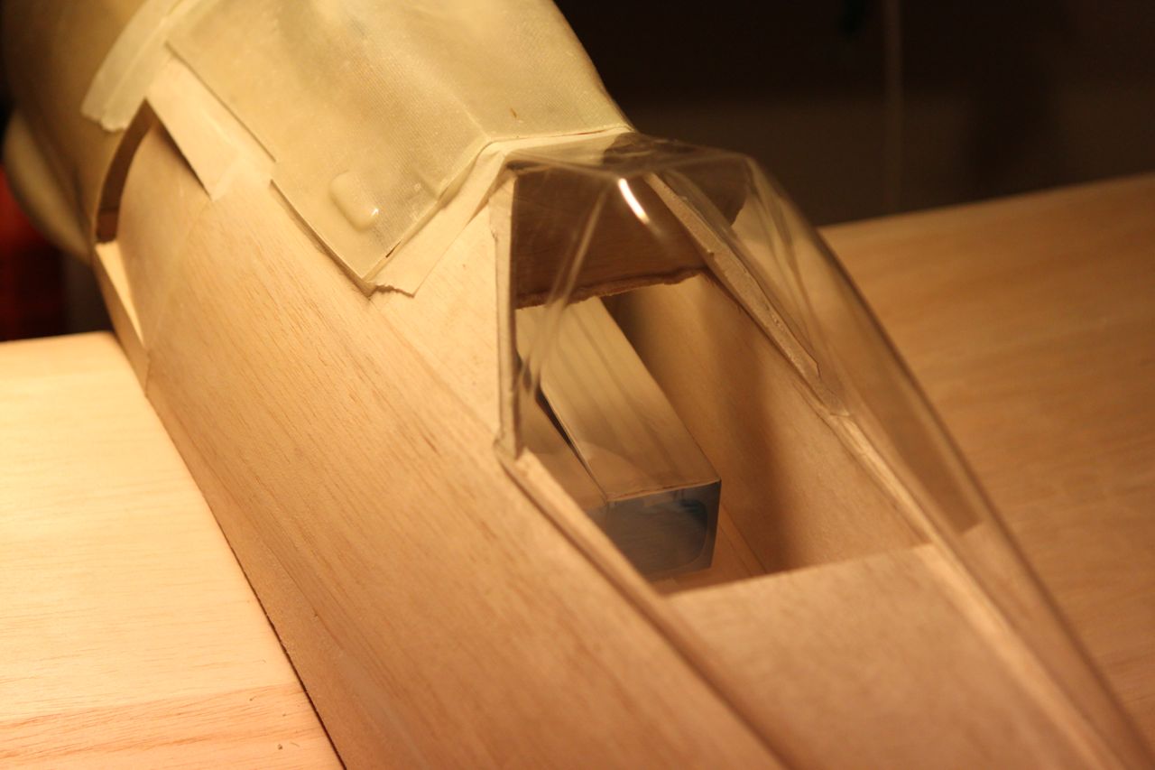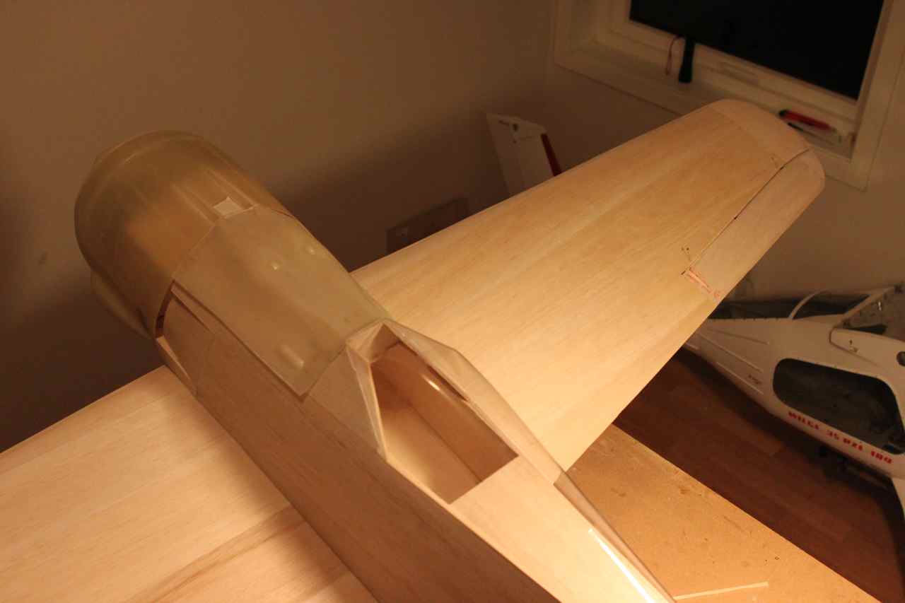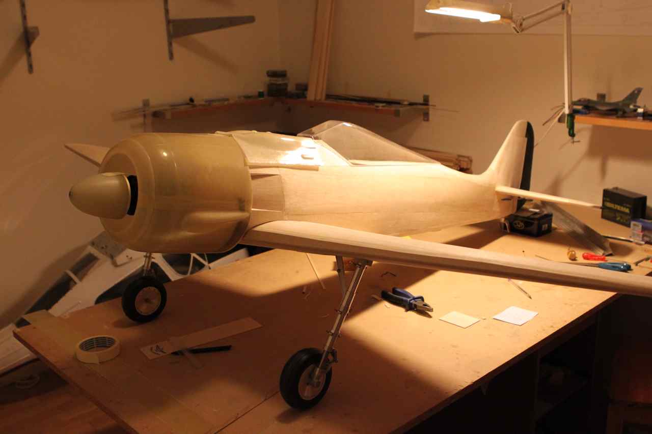 Jobber litt med cowling, viser seg at propell er 5mm utav senter, altfor mye. Cowl ser rett ut så det ser ut som om jeg må flytte motoren.. Har også lagt på en balsplate foran cockpit og lister langs sidene for å begynne med våpendekselet.
