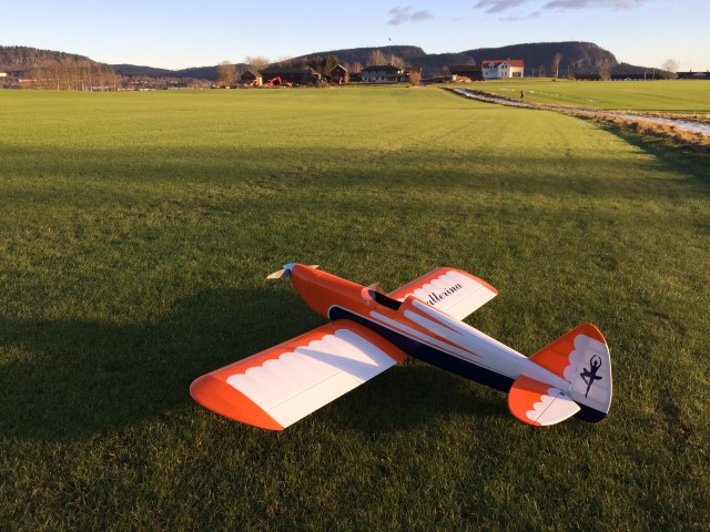 Modellen trengte en god del trim (fordi jeg hadde CG litt langt fremme), men etter flytting av battery og justering av både utslag og expo fløy den veldig fint.