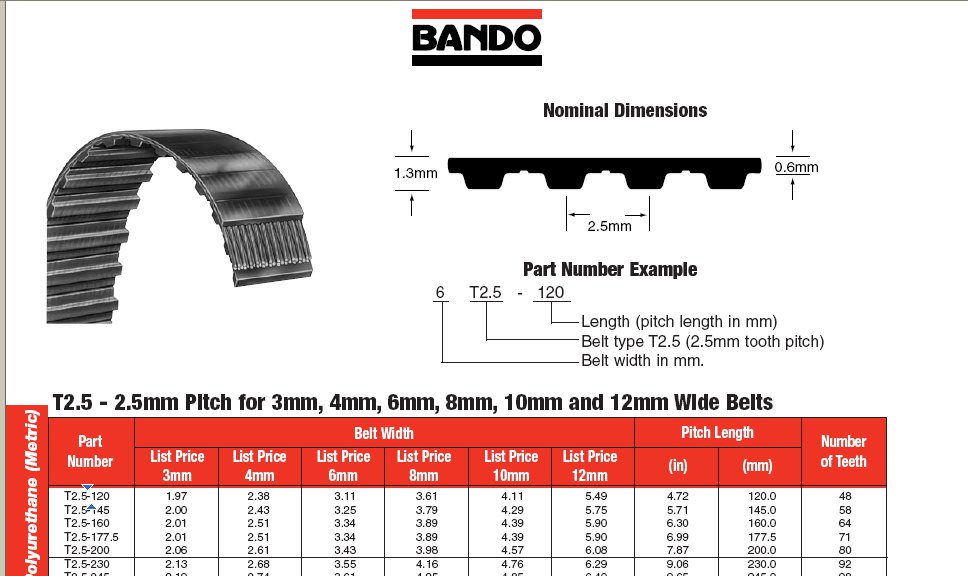 Trenger nå flere reimer. Noen som vet om forhandlere i Osloområdet ? Behøver sikkert ikke være Bando reim, men en med samme data: 2,5 mm fra topp til topp på tennene, 120 mm lang, 6 mm bred.