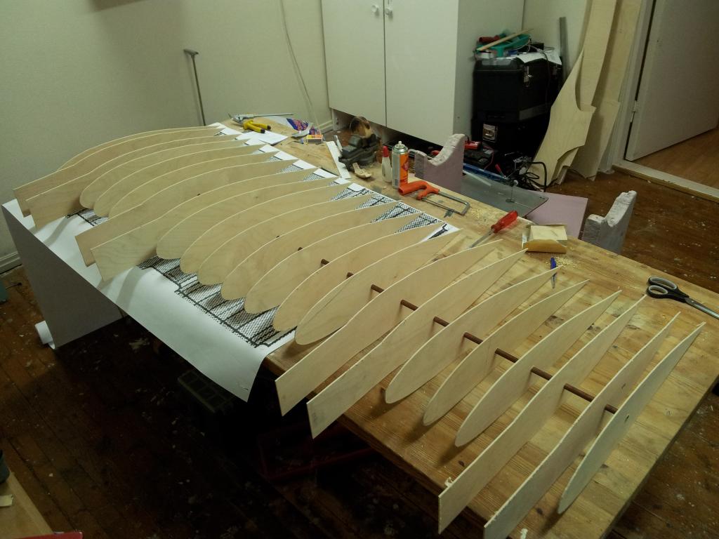 Det blir veldig scratch-aktig siden jeg bygger den rett fra 3 planskisse og en plastmodell. Innfallsvinkler og vingeprofiler blir etter eget hode.