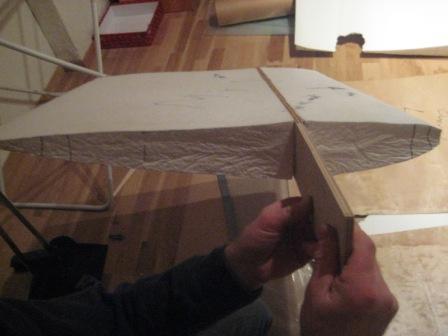 eksprimentere litt med alternativt vingeskinn. Felte inn furulist som hovedbjelke med kryssfiner forsterkning
