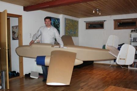 med understel og radioutstyr blir ca 20 kg som er super lett med 2 kvadrat meter vinge flate