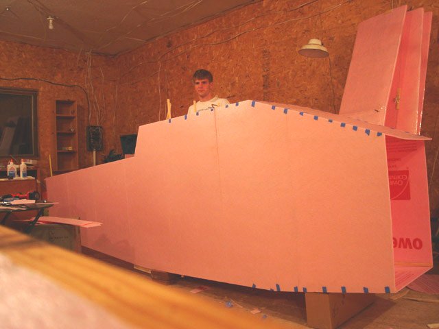Ser for meg ett lag med 4-6 personer, bygge av isopor/furu/kryssfiner.