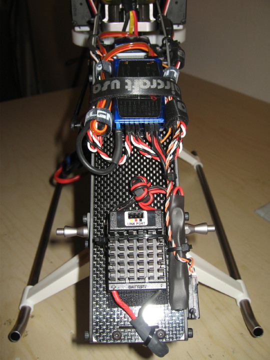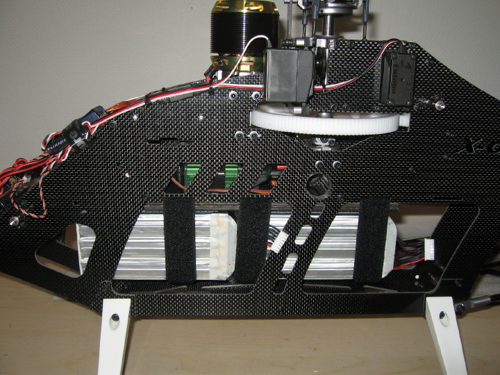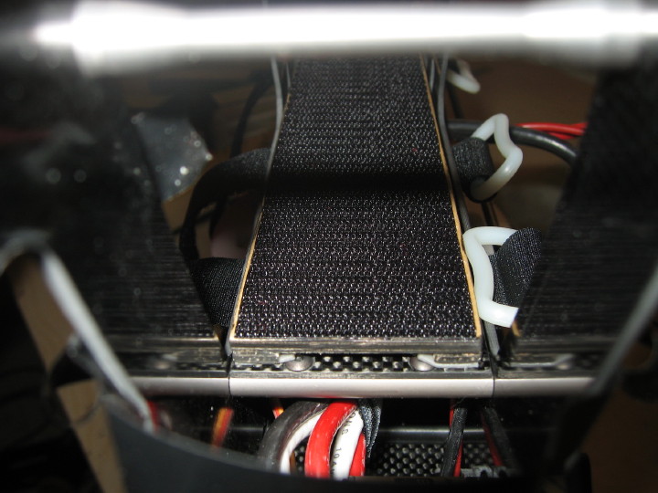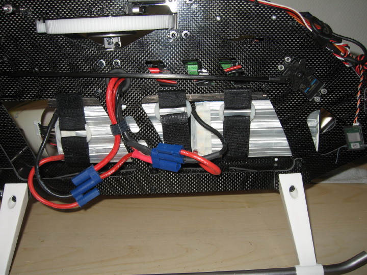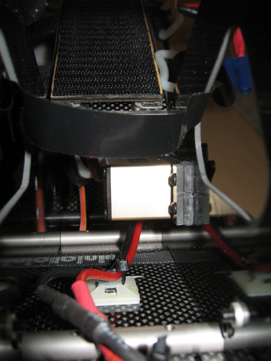 Resultatet ser ikke så veldig fancy ut, men det løste problemet. CG ble bra når jeg fikk batteriene noen cm lenger frem. Det hadde sikkert ikke vært noe problem å fly som det var, men en annen fordel jeg fikk ved å gjøre dette var at batteriledningene havnet på en mye mer laglig plass med den nye batteriposisjonen.
