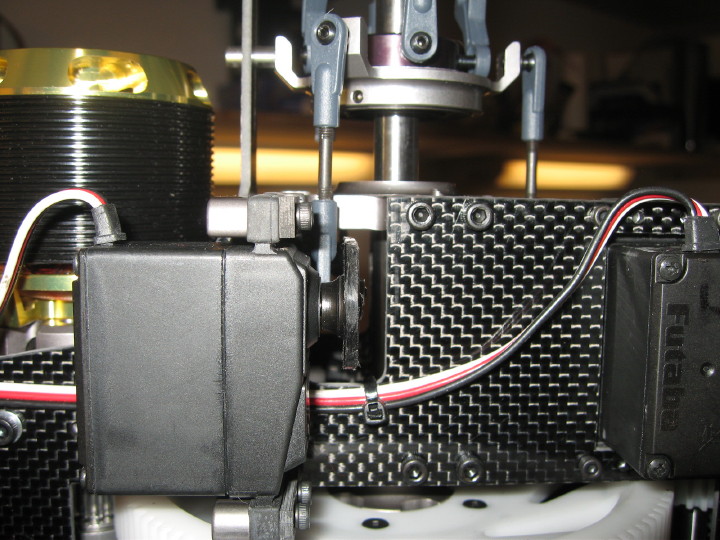 Haleoppsettet er og verd å nevne. Manualen sier 14mm servo horn i tegningene. Ifm haleoppsett bak i manualen anbeler de mellom 13-15mm. Mitt standard Futaba horn hadde vel 13,5mm. Normalt skal man justere endepunkter på gyro for å få mest mulig pitch uten binding. På V-bar er maks anbefalt verdi på halepitch 120 poeng, og på min var det da langt igjen mekanisk stopp. Jeg vurderte derfor å finne et større horn.