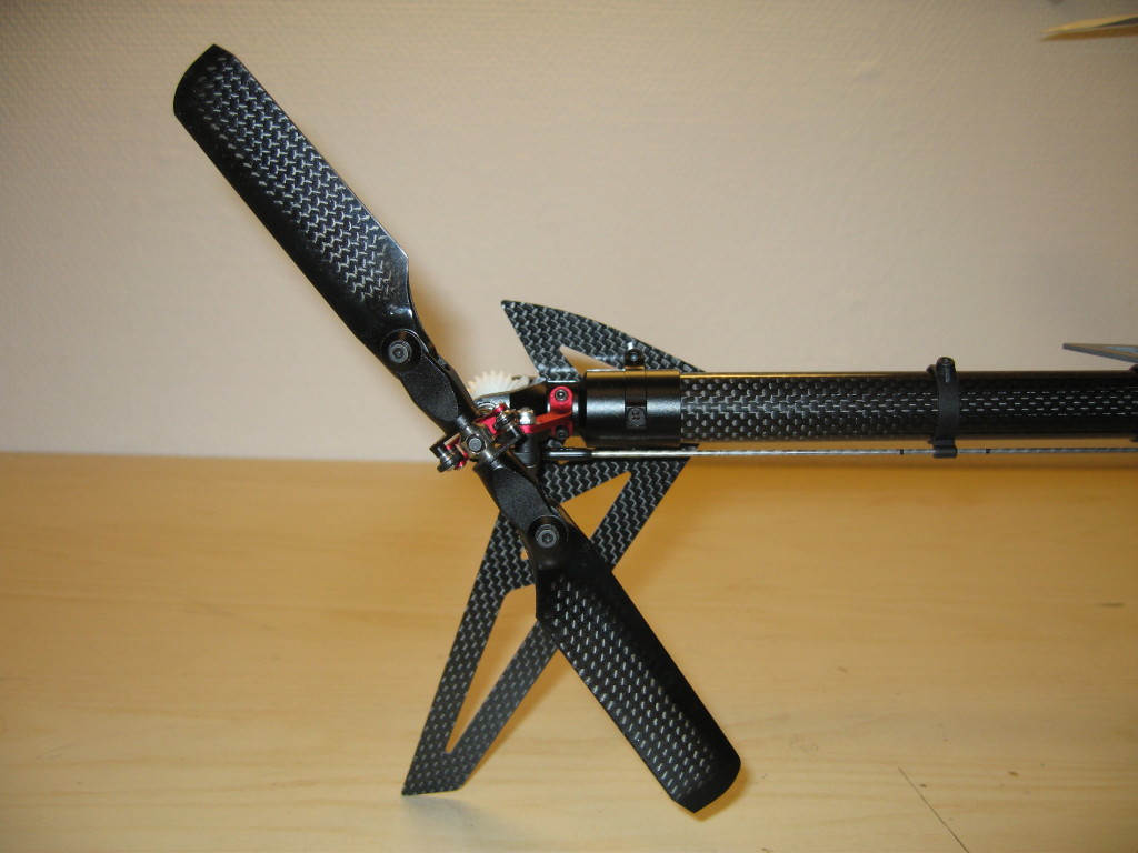Headspeed senkes gjerne med større disk slik at motor må gires om. Lavere turtall påvirker også hale som kan kompenseres med lengere blader. Da kan lengere halefinne være en fordel, samt forsterket overføring til halen;