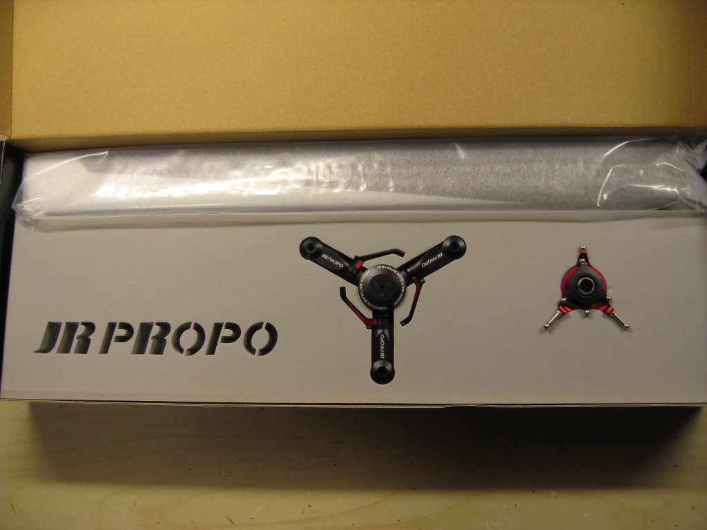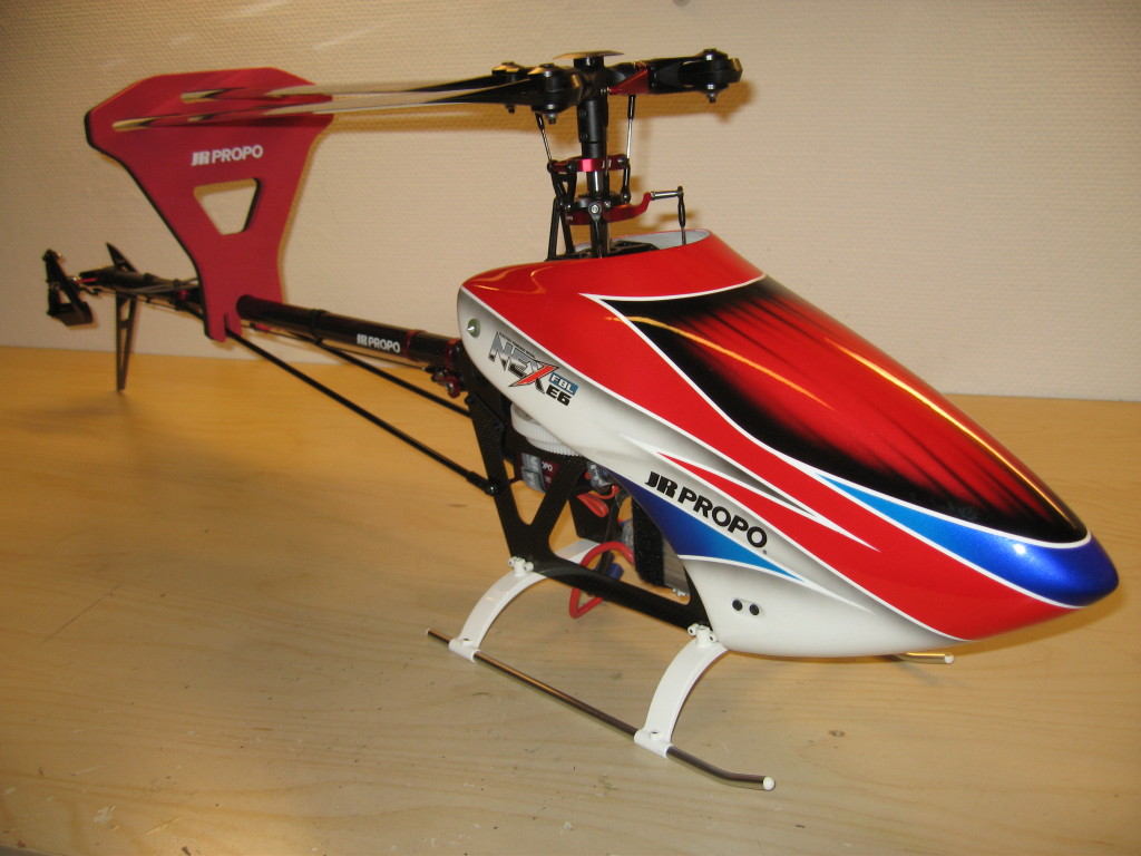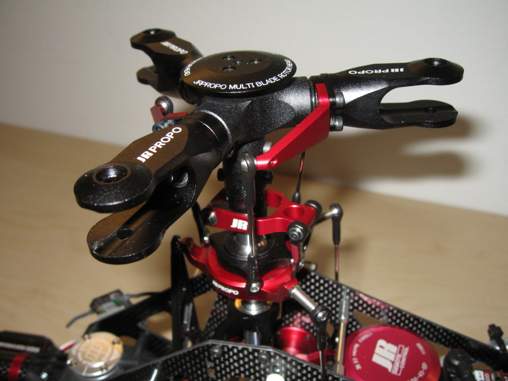 Nå skal denne oppgraderes med JR sitt nye 3-bladers hode. JR har kommet ut med disse 3-bladers hodene for 3D flyging til E12, E8 og E6-550. Det er altså sistnevnte hode jeg skal ha.