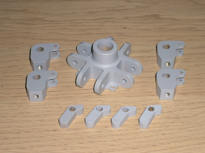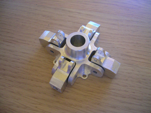 Jeg er stort sett ferdig med hovedrotoren. Det gjenstår finish og rotplater på eike bladene, mens huben er ferdig. Jeg har ikke begynt på halerotoren enda, men tror jeg kommer til å bruke deler fra enten Eco eller Swift, med litt modifikasjoner for å forbedre illusjonen av skala. Det er snakk om ganske lavt turtall her, 6-7000 rpm, så selv Eco-deler vil fungere tilfredstillende. Halerotorbladene skal jeg frese i eik.