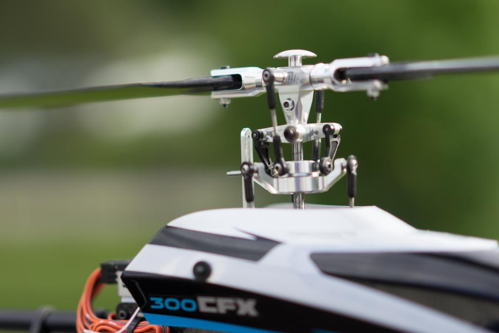 300CFX er fin å se på, med blå canopy og tiltalende design. Helikopteret har full karbonfiberkropp, med hode og bukk til hovedmaste i aluminium. Maskinen framstår stramt og stivt.