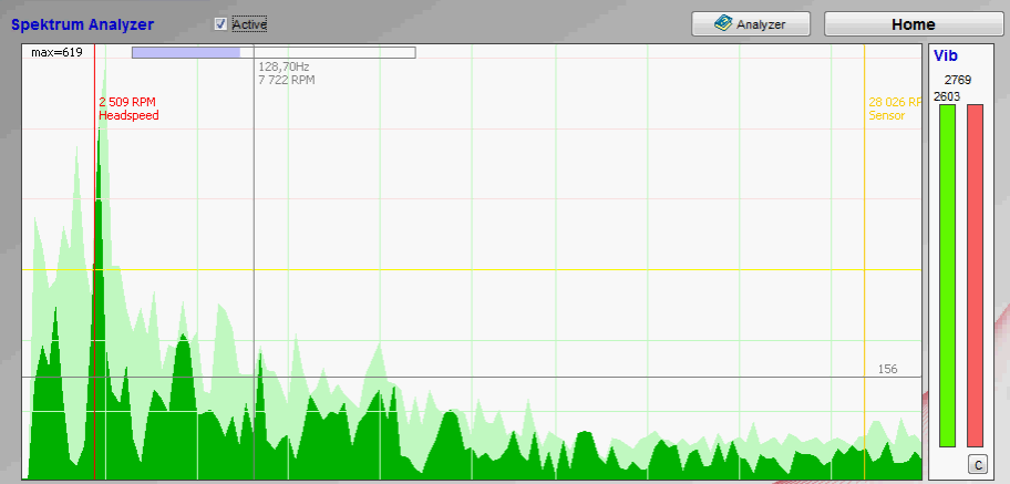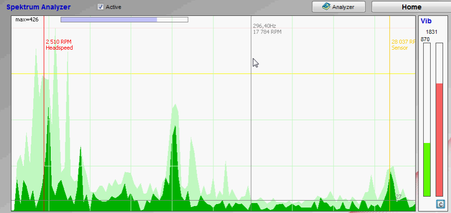 Som en kuriositet kan jeg jo nevne at jeg har hatt sterk vibrasjon på headspeed-frekvensen. Jeg prøvde å bytte alt av lagere, swashplate, feathering shaft og main shaft uten at det hjalp. Det viste seg til slutt at det var selve headblocken som var skeiv. Litt interessant siden den aldri har vært kræsjet med... Anyway, V-Bar sin vibrasjonsanalyse er veldig nyttig når man skal finne vibrasjoner. Man slipper å lete i blinde siden man ser om den er i motoren, langs hovedmasta eller i halen. I tillegg får man jo et tall svart på hvitt på hvorvidt det blir bedre istedetfor å måtte synse seg frem.