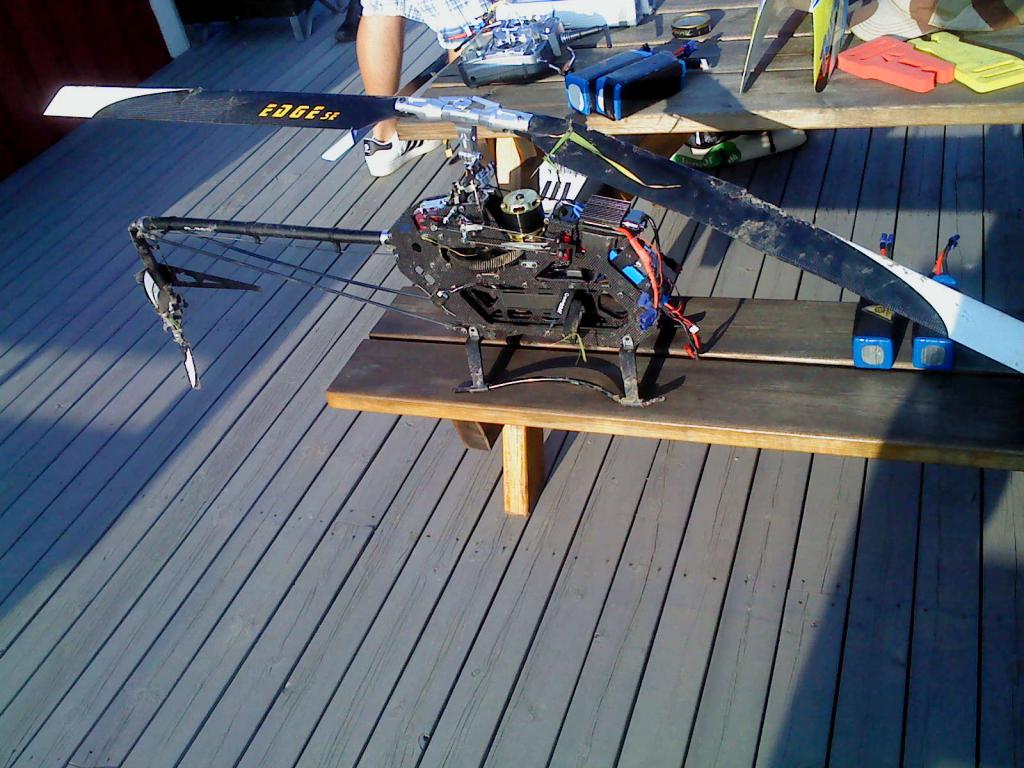 Det var synd vi ikke filmet det. Spektakulært å se på ett heli som prøver å skrelle seg i luften. Vi plukket deler i en radius fra der det demonterte seg.