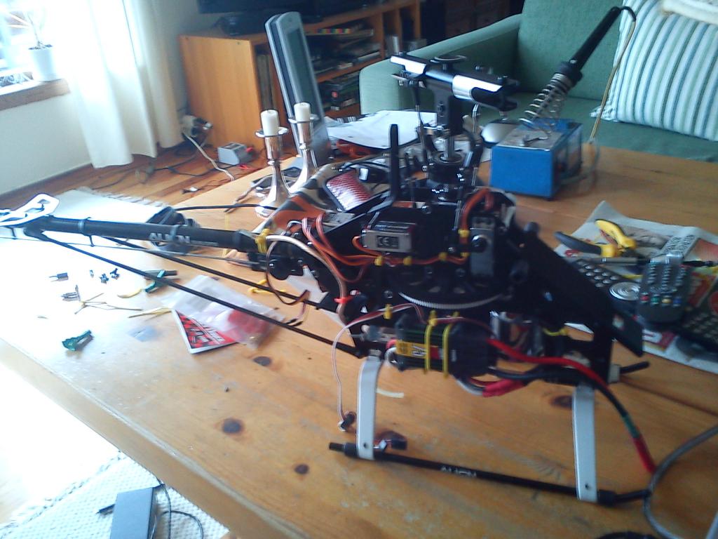 Men hvor skal gyro plasseres? Har 4 mulig plasser, nederst der gyro står i dag, "hylle" over der mottaker står i dag, oppå hale holder og på siden av helikopteret.