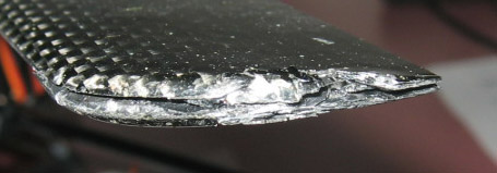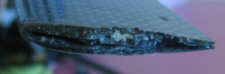 Heliet måtte bort og kose med fryseren og hovedrotor-bladet slo bort i kanten. Heldigvis bare det ene. Se de to bildene under, det er av samme blad. Bør jeg skifte det ut eller kan jeg fortsatt øve meg med det inntill videre?