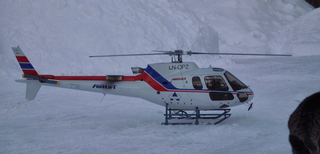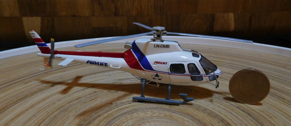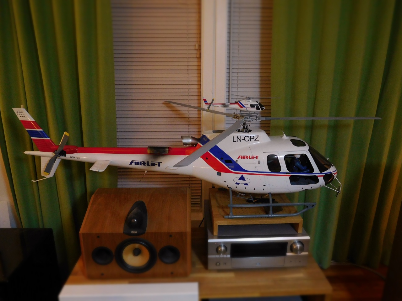 Har laget enda en liten Airlift AS350, men denne gang skal den ikke fly. Den skal stå på en modell av et forskningsskip som lages av et verft.