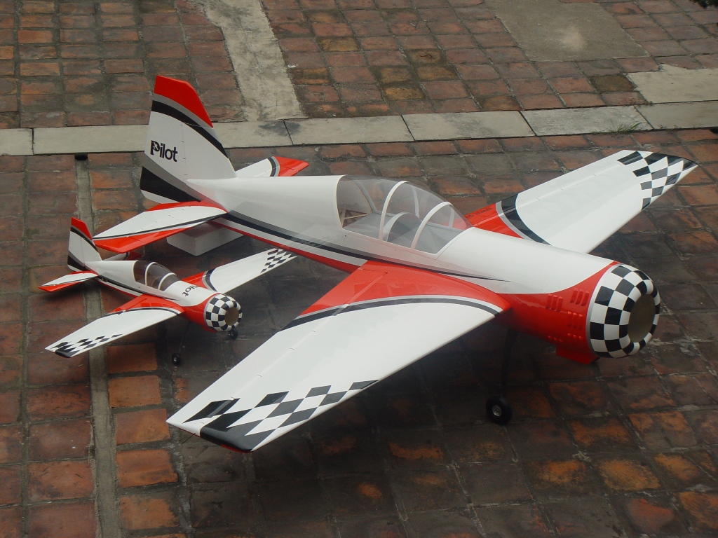 Her vises 55%’en sammen med en 1,8meters *30cc-modell. Man kan lett*tenke seg at det har gått med noen ruller med Oracover. Flyet har samme finish og kvalitet som de andre Pilot-RC modellene, så løp og kjøp!