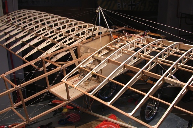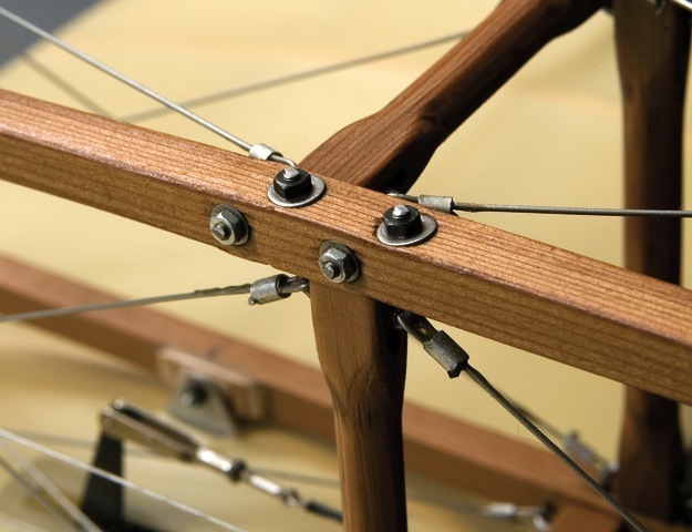 Legg merke til at i vingene er det brukt 5(!) forskjellige tresorter pluss noe metallbeslag og litt glassfiberdeler.