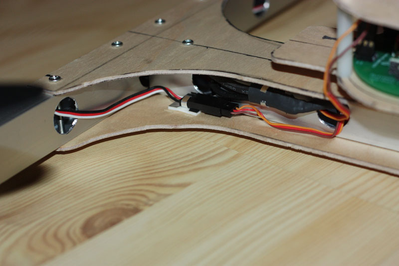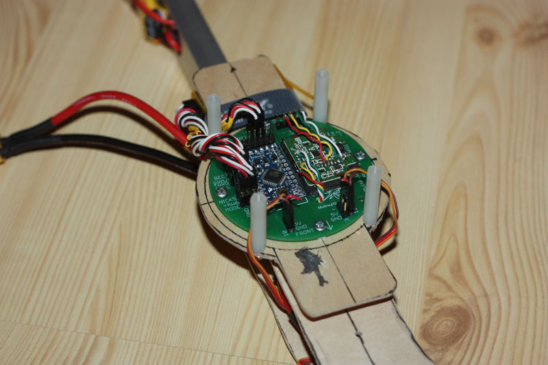 Kontroller på saken er et multiwii kort, gyroer fra en wii motion plus og autolevel fra en nunchuck.