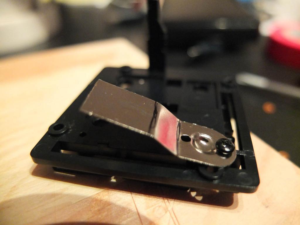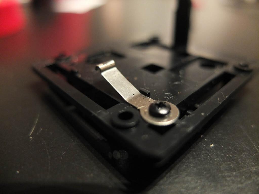 Men en eller annen form for batterifjær ville sikkert også gjort nytten. Hovedpoenget er å få en flate som presser på taggene i stedet for en liten bøy eller tapp.