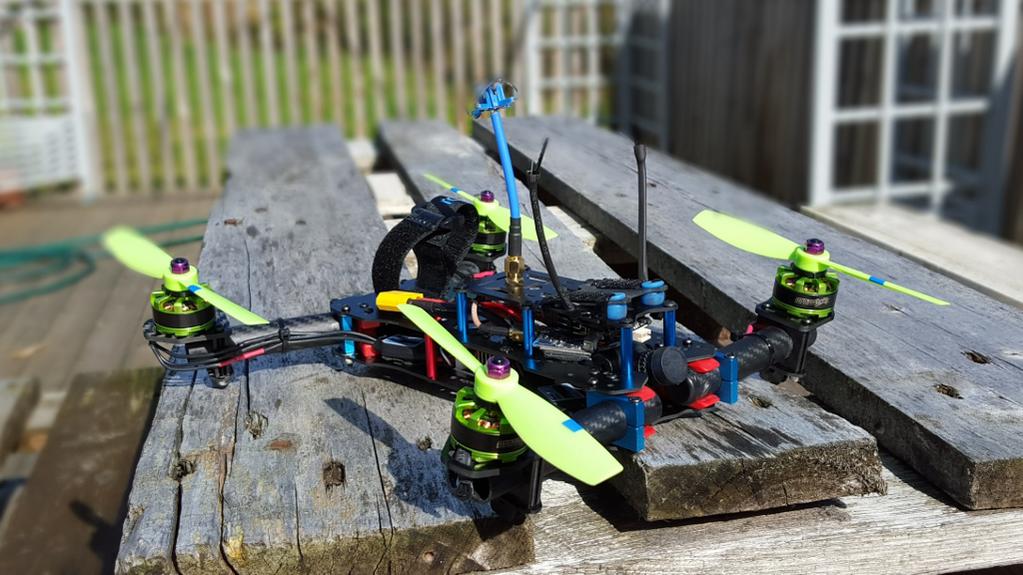 Siden mesteparten nå er loddet og koblet til gjenstår det bare egentlig å skru platene sammen og justere litt vinkler på motorene før det er klart for maiden.