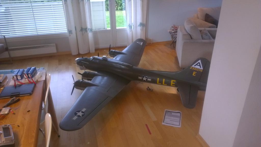Ble en firemotors B-17 fra ASM med elektro oppsett. Skulle gjerne hatt mer lyd, men vet ikke om jeg orker å konvertere. Mye jobb, dyrt og det er nok begrenset hvor mange turer denne får. Skal fly i morgen eller torsdag og håper på å få justert den fint slik at den står klar til ett eller annet stevne i morgen. Modellen ser bra ut og skal tilsynelatende fly bra. Kommer litt video/fotoshoot etterhvert