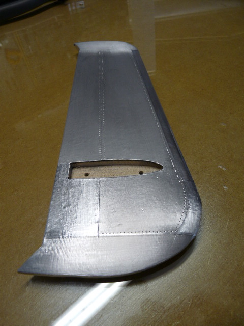 Da har jeg prøvd meg med FliteMetal på den ene halefinnen. Denne gang bare med bare å pusse lett på glassfiberen. Preget også inn nagler med et medfølgende trinsejul. Kjempelett!