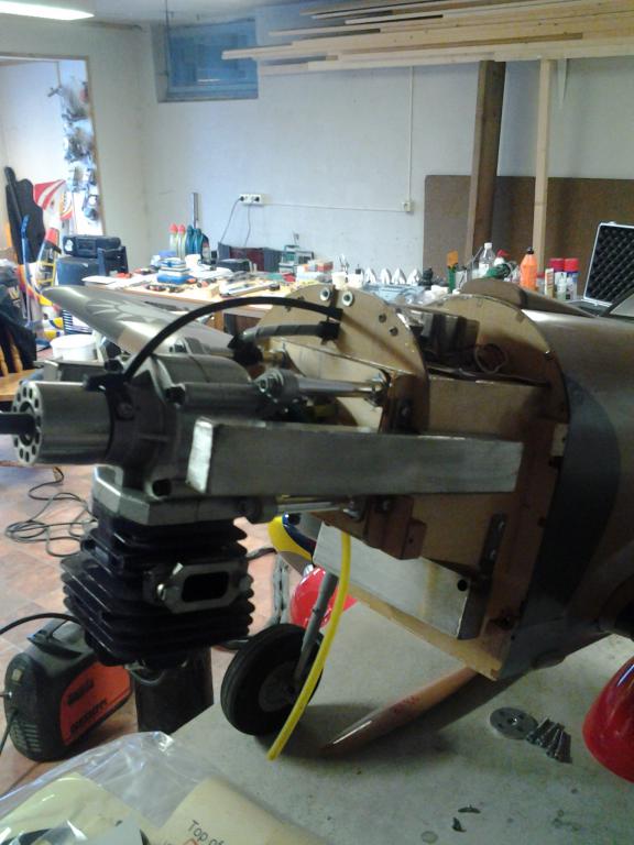 Har også montert halehjulsretract'en og strekt opp slanger og wirere, samt begynt på servosengene til bal ror og flaps.