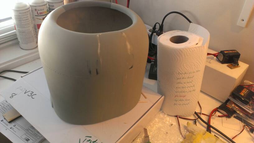 Fant ut at det holdt å dele cowlingen i bunnen og utvide med cirka 3 cm så da trenger jeg kun den lyse fargen.