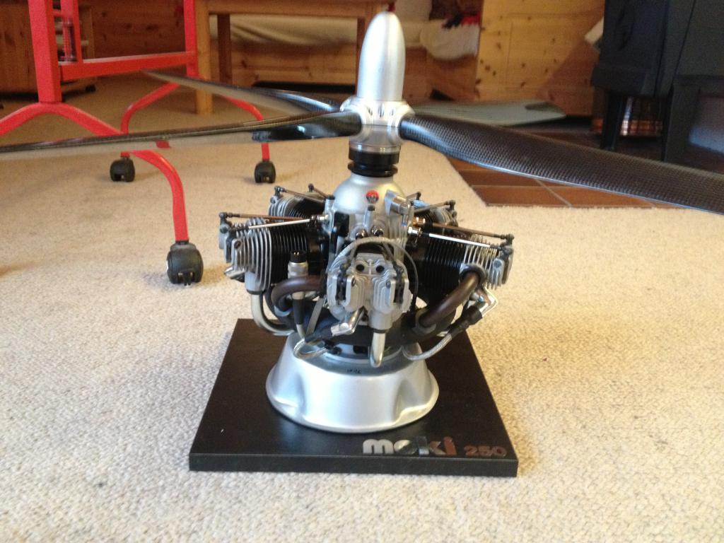 Vekt på Moki 250, komplett propellassembly, og ferdigstilt motordome: 6.4 kg.