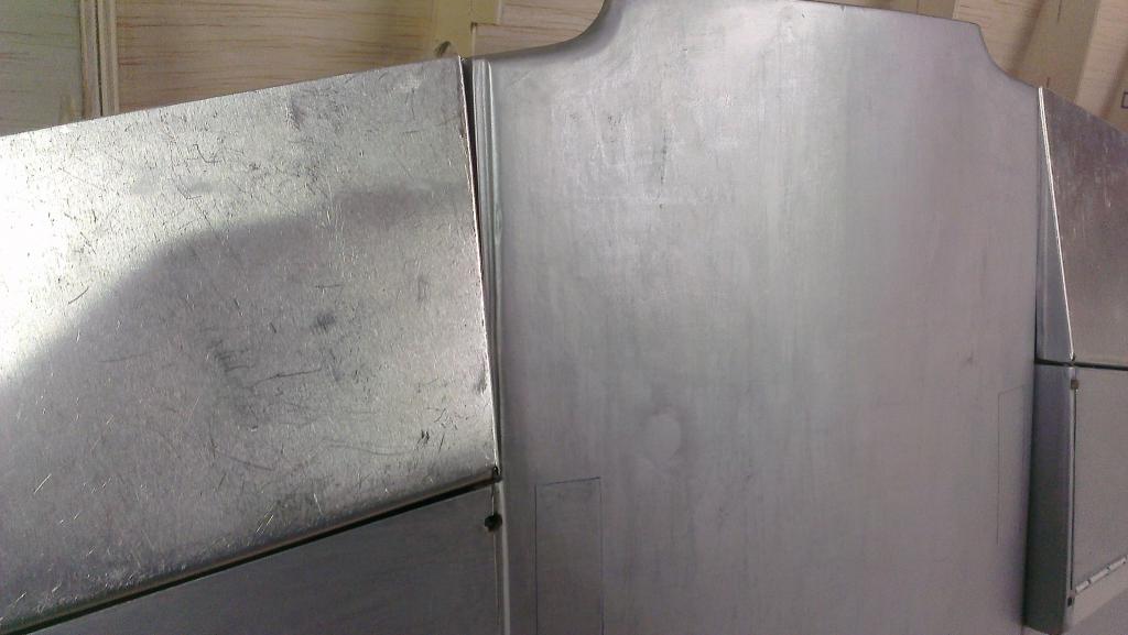 Om underlaget er jevnt fungerer aluminiumtape som metalisering, men du må da være veldig nøye for ikke å få rynker! Det går fint å lakke aluminiumtapen, men husk isåfall å grunne med aluminiumprimer! Av fargeskjema ville jeg gått for Old Crow, den som sto på Notodden en periode! Lykke til videre