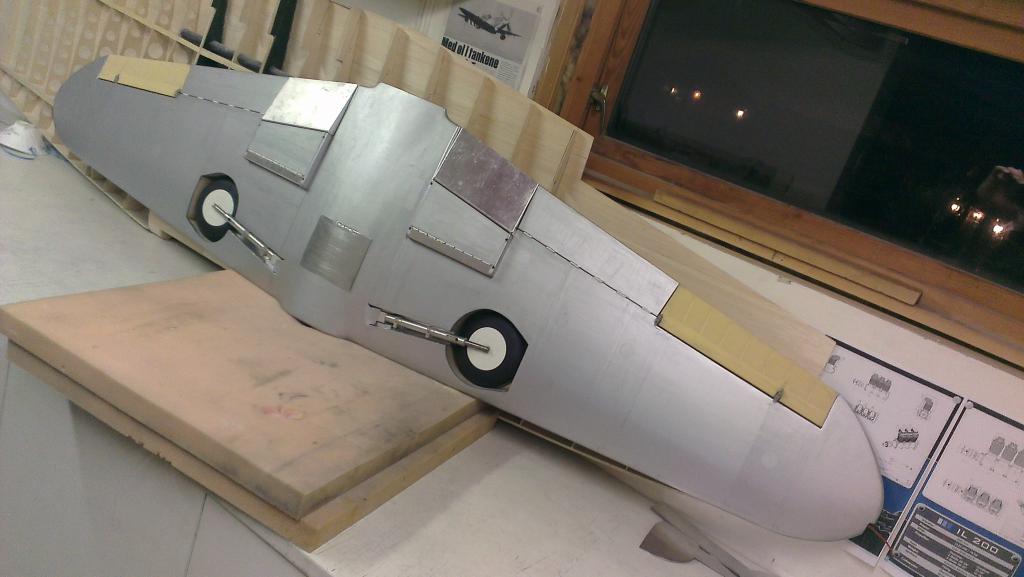 Da er det aktivitet igjen vingefairings er nedpusset og limt på igjen. Nå blir vingefairing glasset sammen med kroppen og ikke pålimt slik som det gjøres når man setter sammen ARF-kit'et.