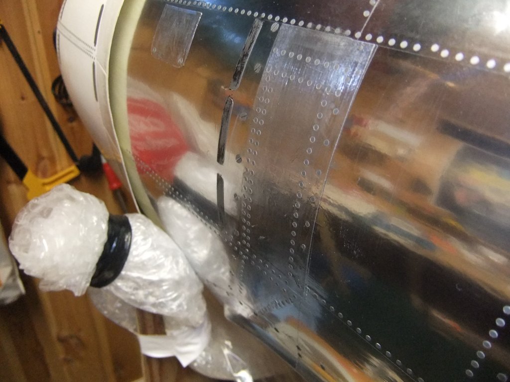 Bruker ikke på langt nær alle naglene. På et større fly, som man ville male over glasssing, tror jeg nok jeg hadde gjort det for det går ganske fort å få dem på. I mitt tilfelle håper jeg de ikke blåser av. På Oracoveren sitter de godt, men på aluminiumen ikke på langt nær så godt. Kanskje det blir en nagleskur under lowpassene