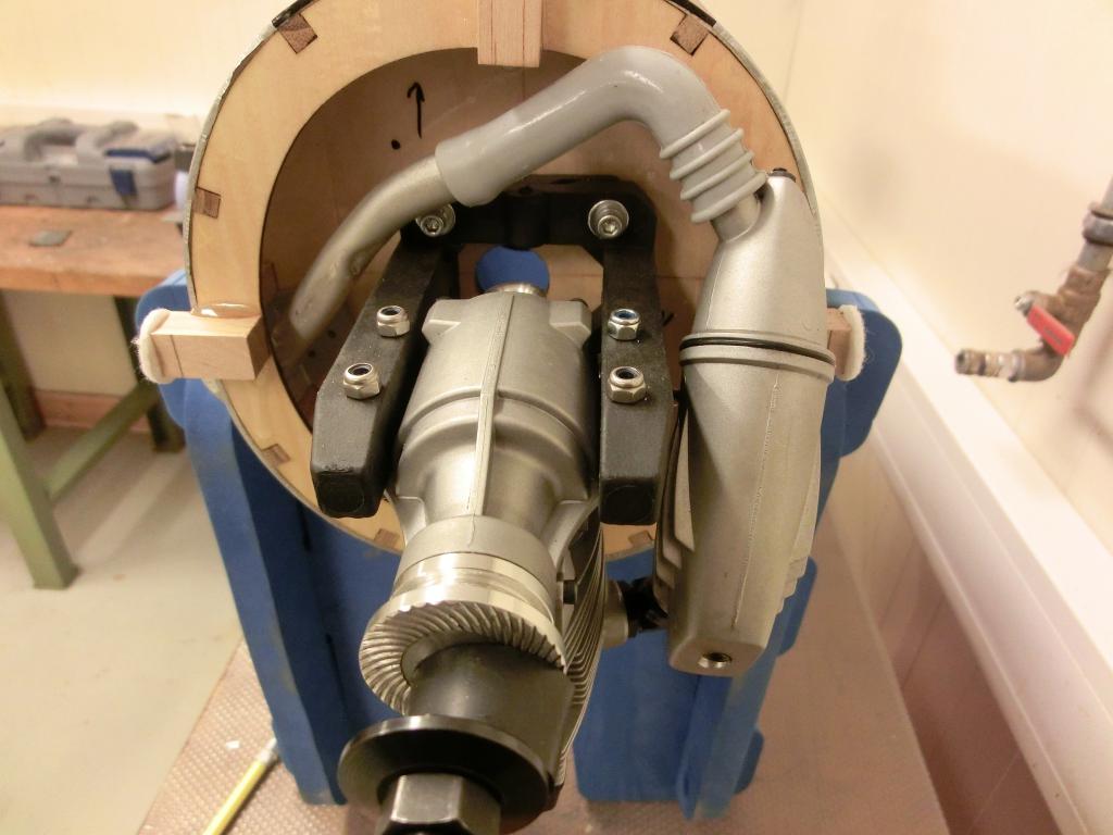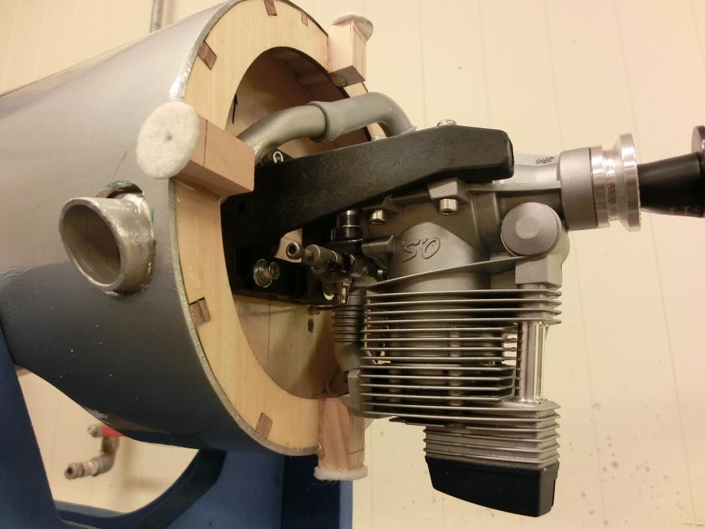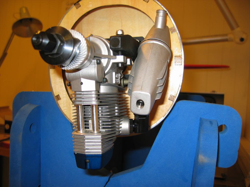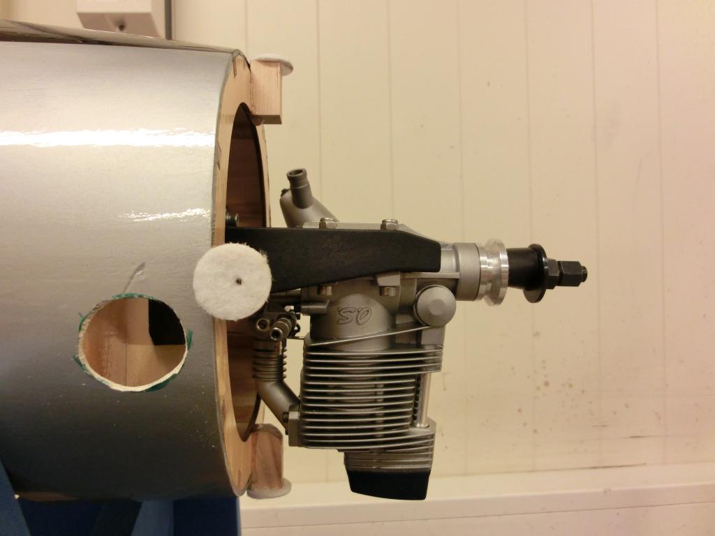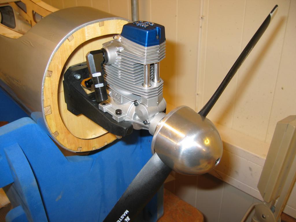 Motor er ikke helt avgjort ennå. Jeg har mulighet for å sette inn Saito 100, OS FS-110 eller Laser 100. Problemet er den innfelte firewallen som er på flyet. Saito 90R3 skal passe fysisk, men av det lille jeg har lest så er det ikke den sprekeste motoren i kassa.