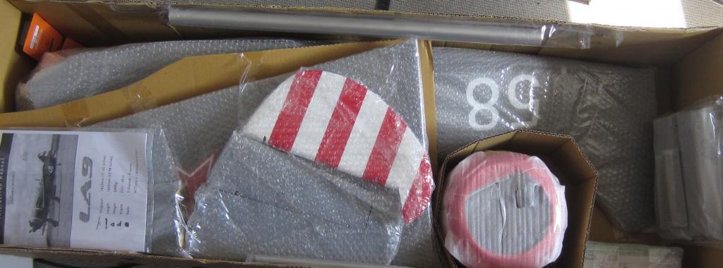 Flyet er veldig komplett rett ut av esken og det følger med komplett luftretract. Alle ror er ferdig hengslet bortsett fra sideroret.