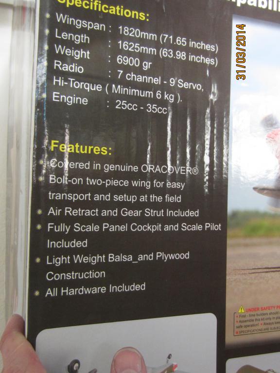 Hei, etter en del tull og ball med min saito 170 ble lengselen etter en "no fuss" warbird for stort og etter et et besøk hos en kompis som også har kjøpt denne modellen ble avgjørelsen tatt. Modellen ble hentet på mandag ettermiddag og har nå fredag ettermiddag testflydd på Evje...en skikkelig ARF med andre ord. Hiver ut endel bilder av ting verdt å merke seg med modellen.