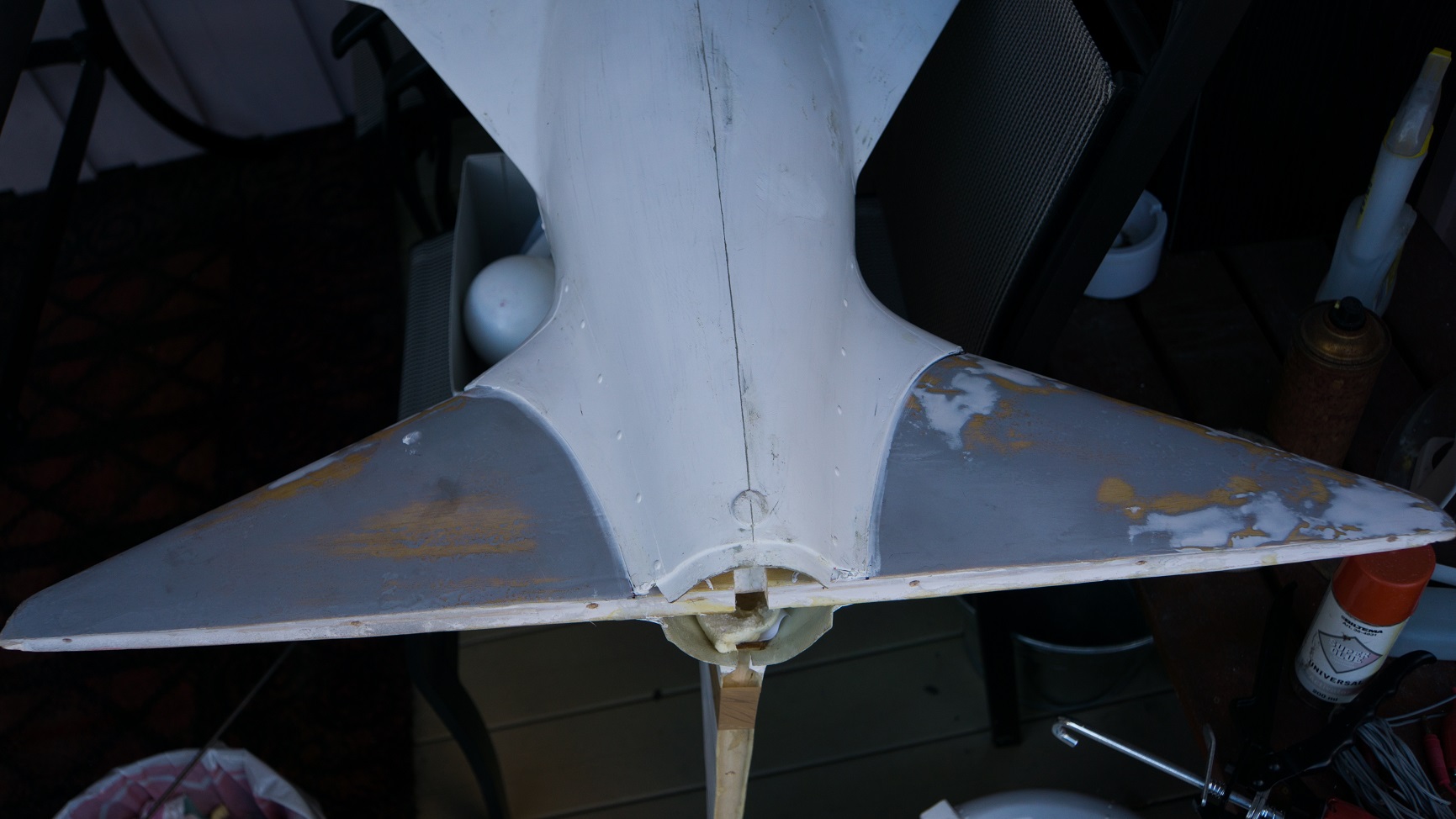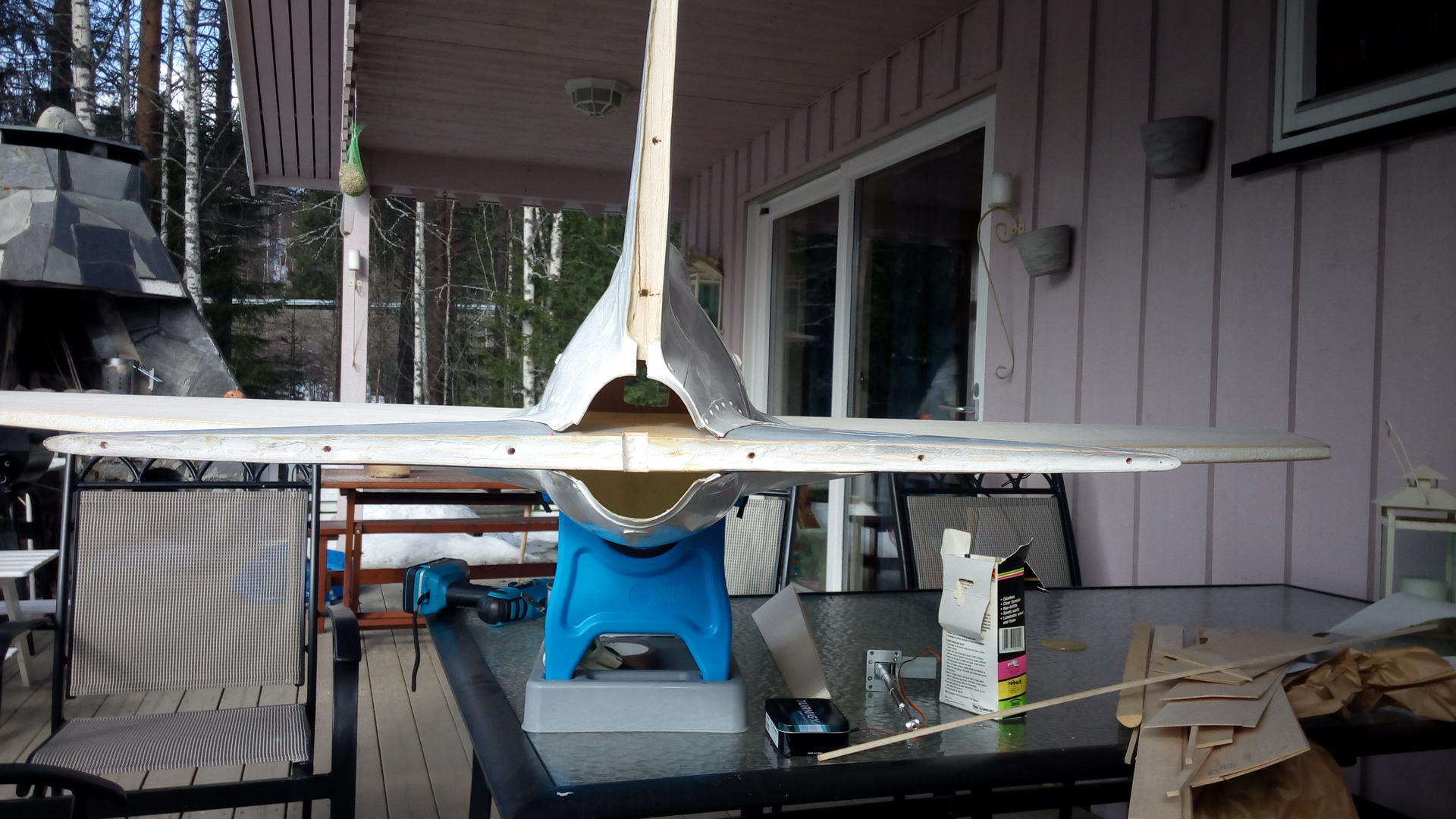 Måtte gjøre om høyderor oppsettet da det ble for spinlelt med det rorhornet som er beregnet på en neselegg. Klarte etter mye strev å få ut den stanga som var limt inn i høyderorene uten å ødelegge for mye. Utrolig hva det pu-limet sitter hehe. Fant igjenn overføringa fra den gamle esm spiten min og har nå satt den til liming. Der er ihvertfall alt av metall.
