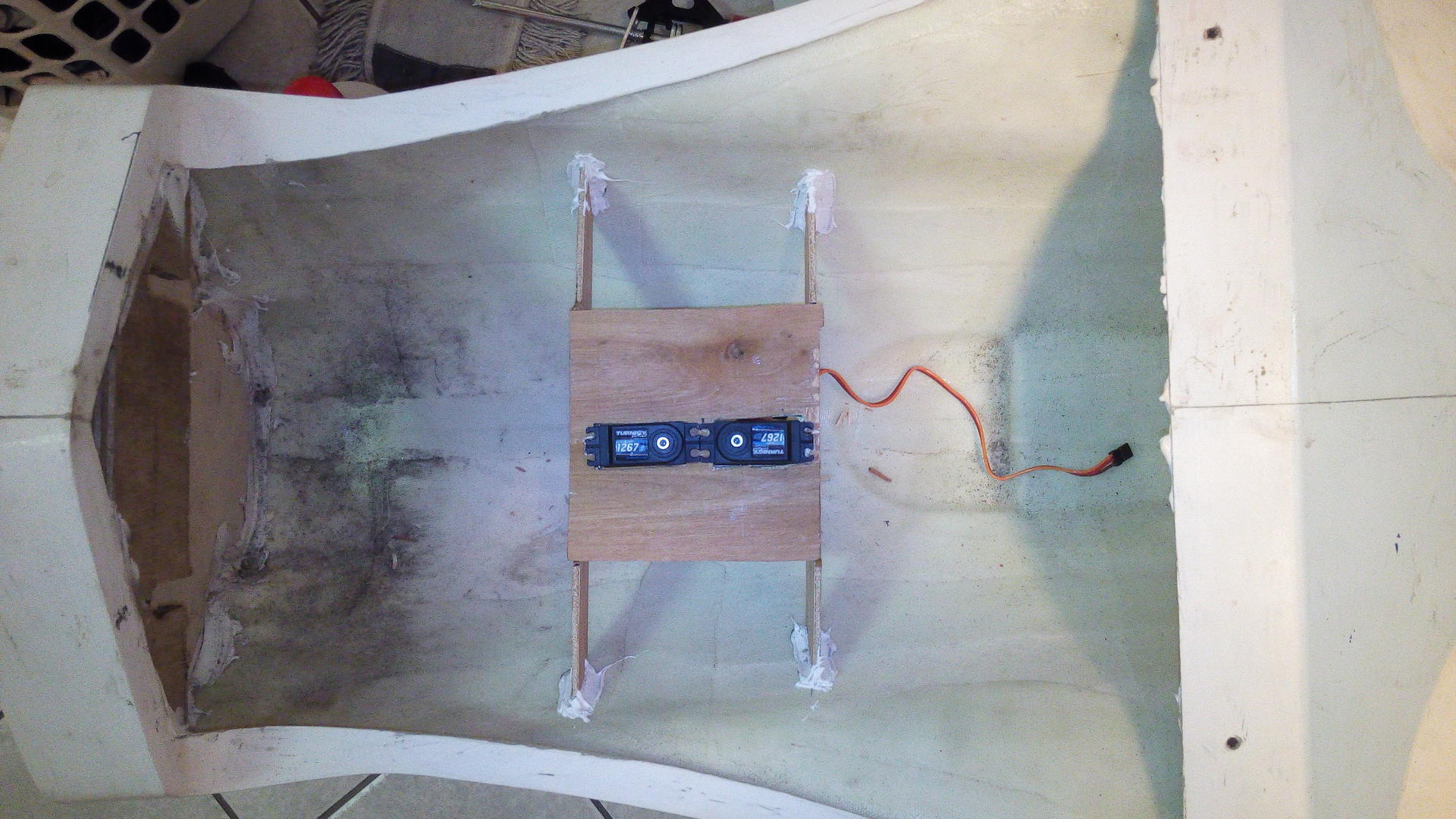 Servo feste til høyde og sideror på plass. Regner med det blir feste for tenning og killswitch også. Skal settes på noen flere støtter for å stive opp. Men må se hvor tanken og batteriene havner også. Hadde tenkt å ha servoene lengre bak men det går ikke hvis jeg skal lage skala cockpit. Om det blir noe av vet jeg ikke sikkert enda men nå har jeg plass til det ihvertfall