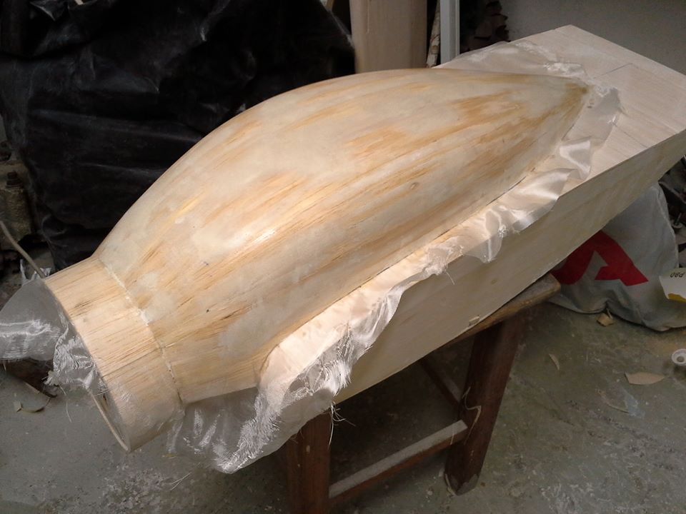 Hmmm, ikke lett å si hva som gikk skeis men glasset et helt fly i sommer og likte svært godt å rulle ut med Biltema små skum ruller. Lett å få lagt alt nedpå samt blir ikke mye overflødig. Bruker West System epoxy og det kreves litt tørketid men da veldig fin å slipe. Grovpusset først og la et syltynt lag nr to, utynnet med ca 15% aceton. Fin finish