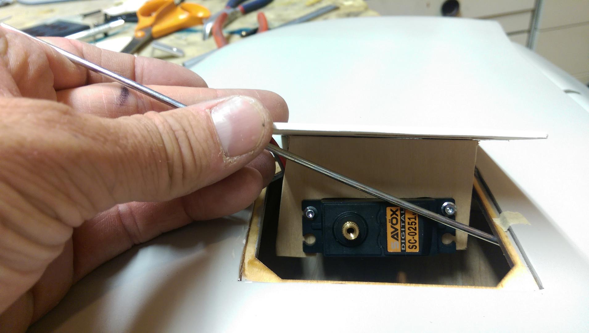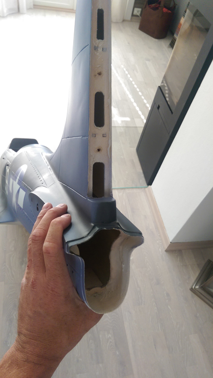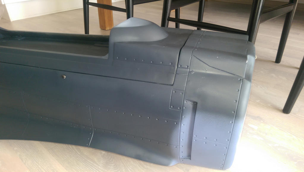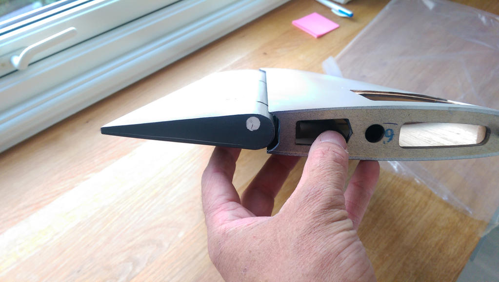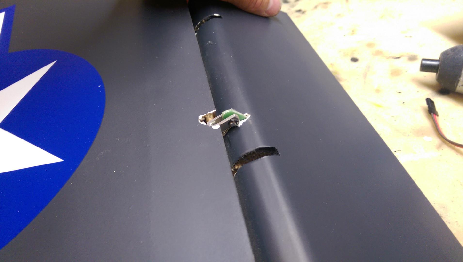 I tillegg freste jeg ut i bakkant av vingen på oversiden der selve rorhornet går ut. Skal banke en liten kappe over linken og males etterhvert så den blir knapt synlig.