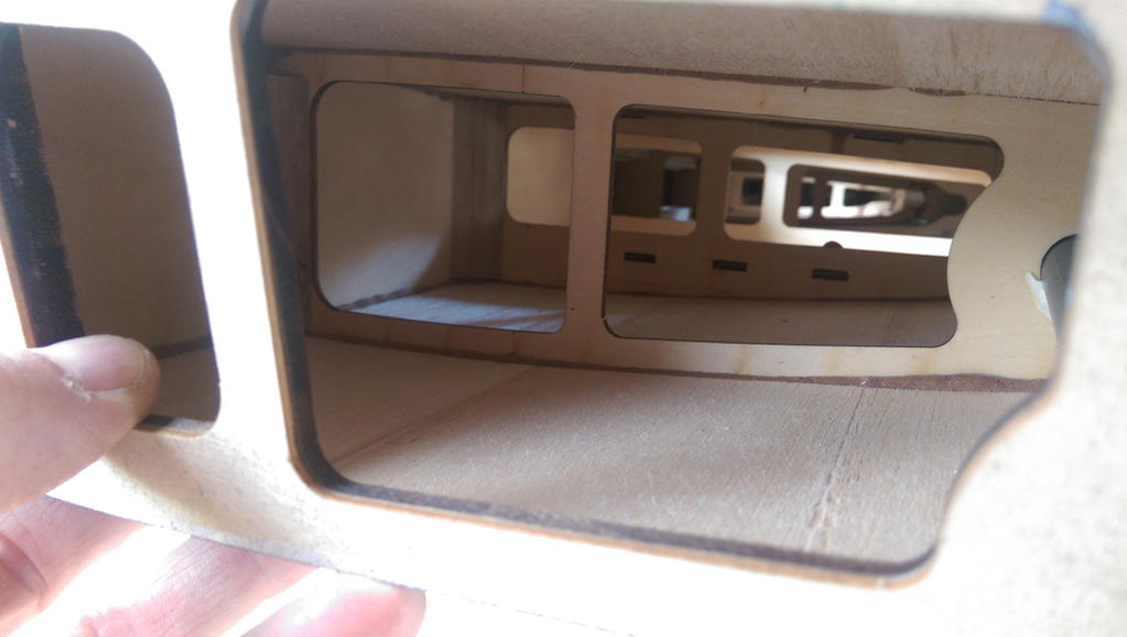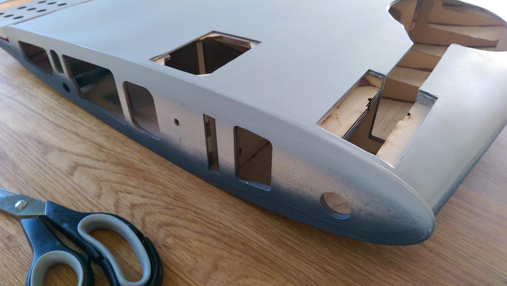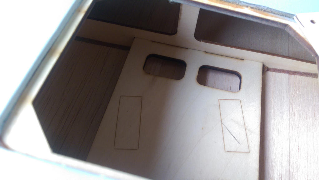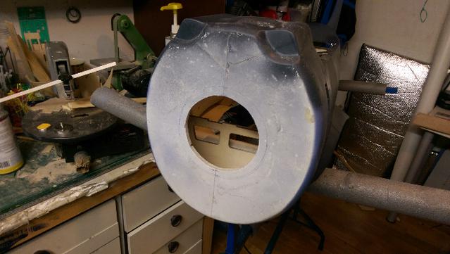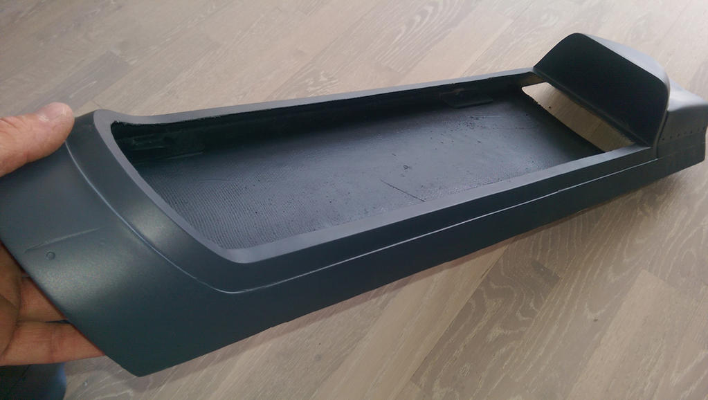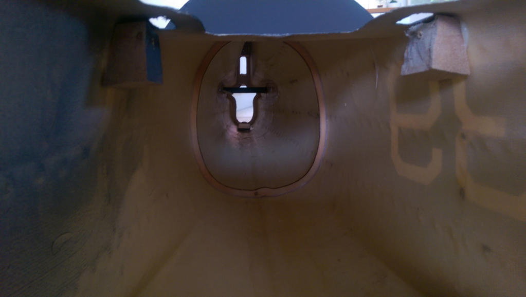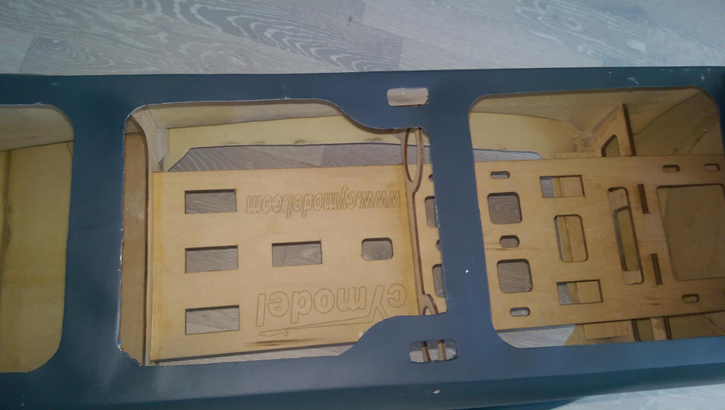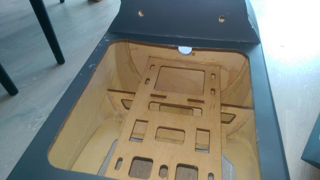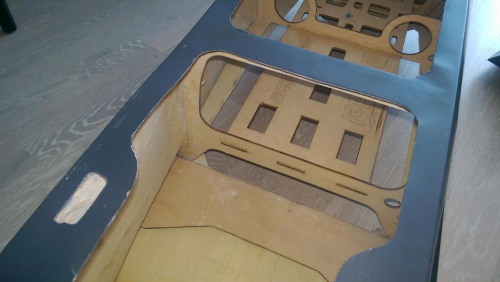 Firewall og kroppen er forsterket med glassfiberstrie og epoxy siden den skal ha ganske heavy motor i forhold til det anbefalte.