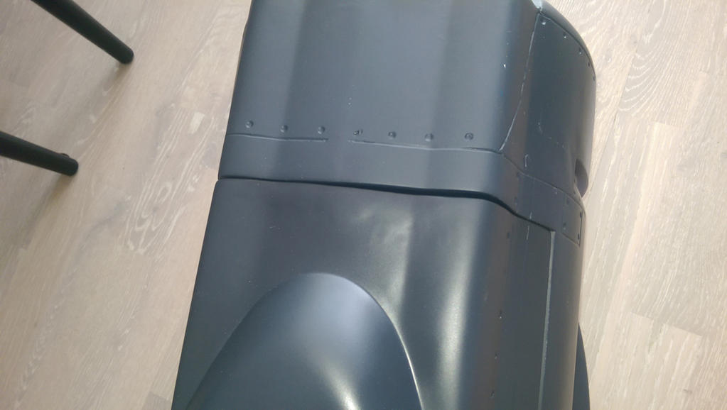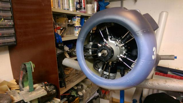 Motordome er innfelt og tilpasset, cowlingen og festet er klart. På settet skal cowlingen helt tilbake på selve modellen men det er glippe der på originalen og det trengs slik at man får sluppet ut litt varme fra fem sylindre.