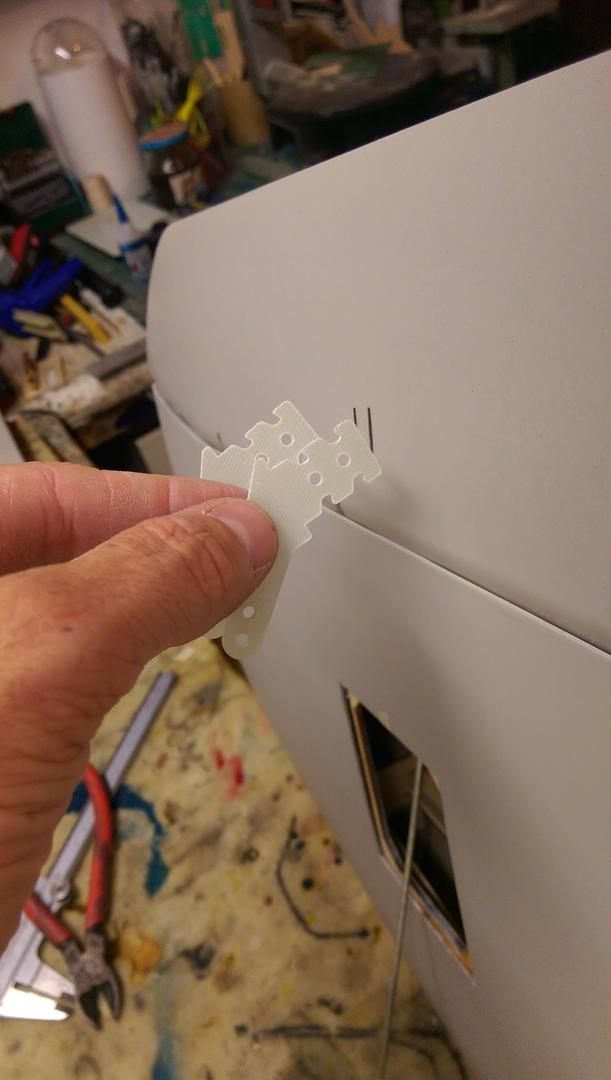 Ble en liten oppstart i dag. Hadde tenkt å sette den sammen as is, men vondt å se digre linker og rorhorn stikke ut på en slik fuggel. Derfor er modifikasjonene i gang. Balanseror er frest ut i fremkant og rorhorn i glassfiber er limt inn. Selve braketten til servo modifiseres slik at linken fra rorhorn får bedre geometri. Har bare tatt det originale servohorn braketten og skjøtet den litt nedover (provisorisk for å se hvordan det ble).