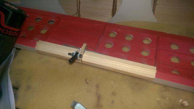 Har bygd en 98" Caribou i mellomtiden men nå er det på Dauntless igjen. Vinge tupper er nå helt ferdige, utslag justert, plugger loddet og multiplex kontakt skrudd i sentersseksjonen slik at montering blir enkelt. De monteres med vingebjelke av tre og glassfiber med vingeskrue fra sentersseksjonen og inn via luker. Har kuttet opp luke i bunn av sentersseksjonen slik at jeg får alt luft utstyr inn der og lett tilgjengelig. I tillegg måtte jeg forsterke vinge bolt festene inne i vingen