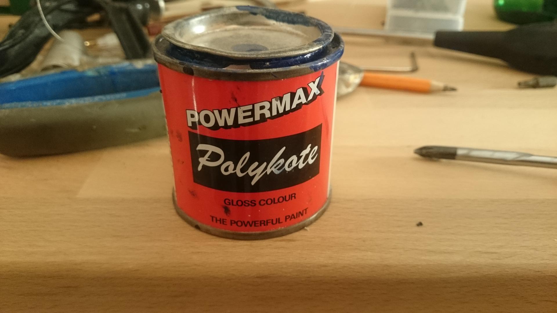 Fant frem min gamle 30 år gamle boks med Powermax epoxymaling som jeg smurte på fineren i cowlingen